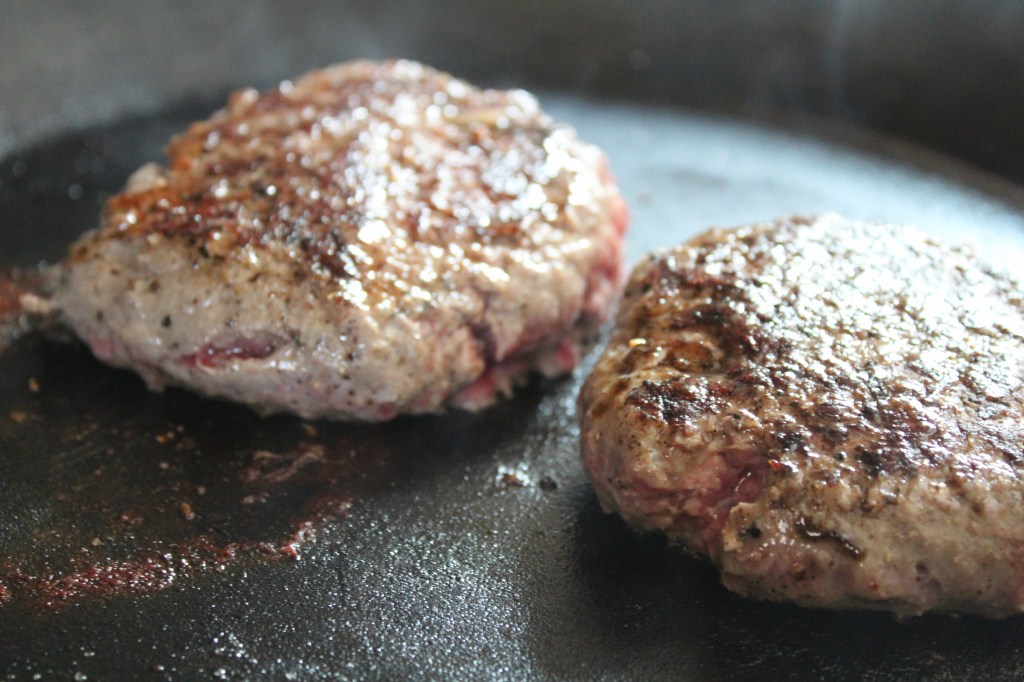 Flip the patties over one more time. Turn the stovetop off and place a lid on the skillet to “bake” the meat for another 3-5 minutes. This should cook the meat to an internal “medium” range.