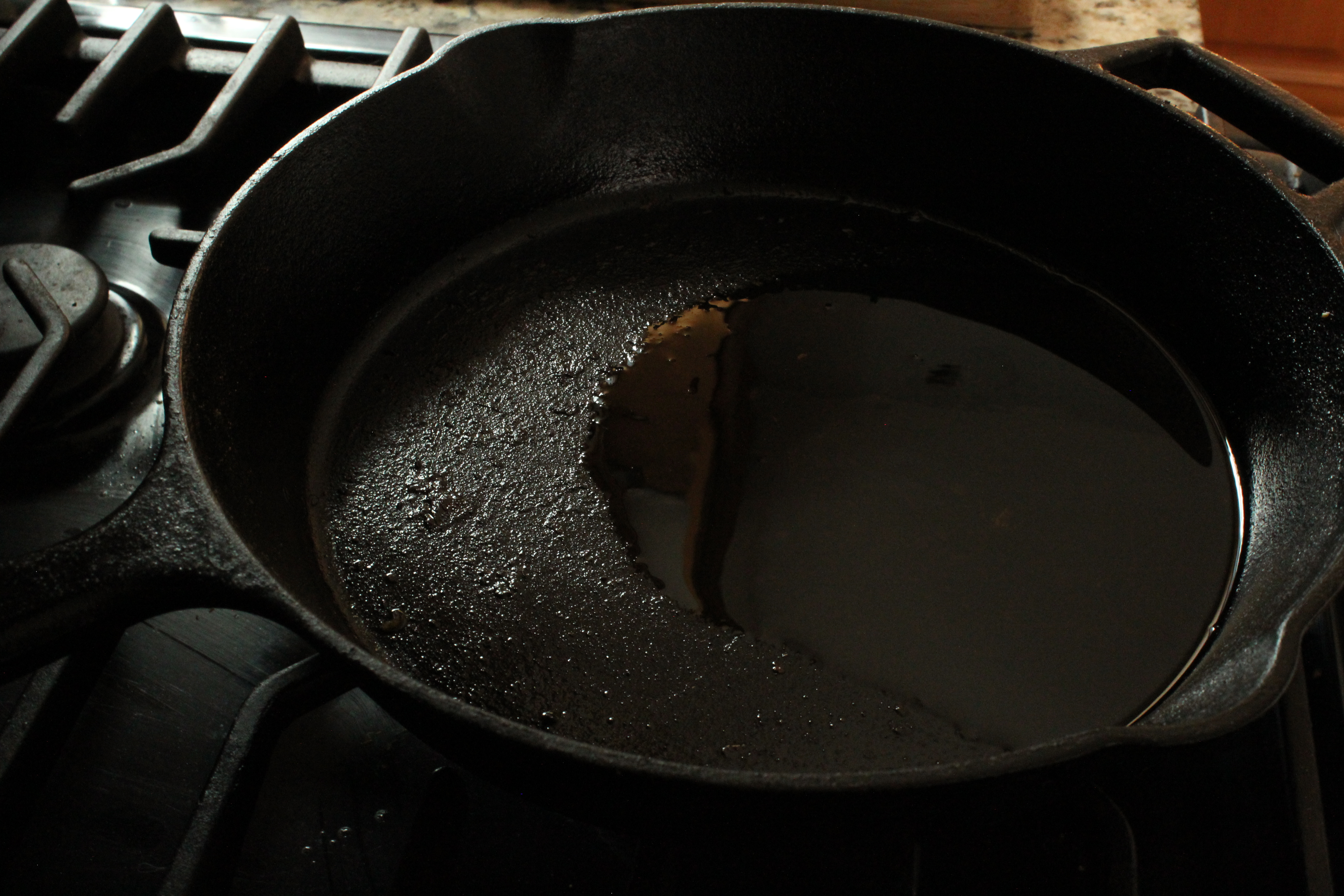 - Turn your stovetop to 5. Pour a small amount of oil olive oil in to coat the bottom of the skillet.