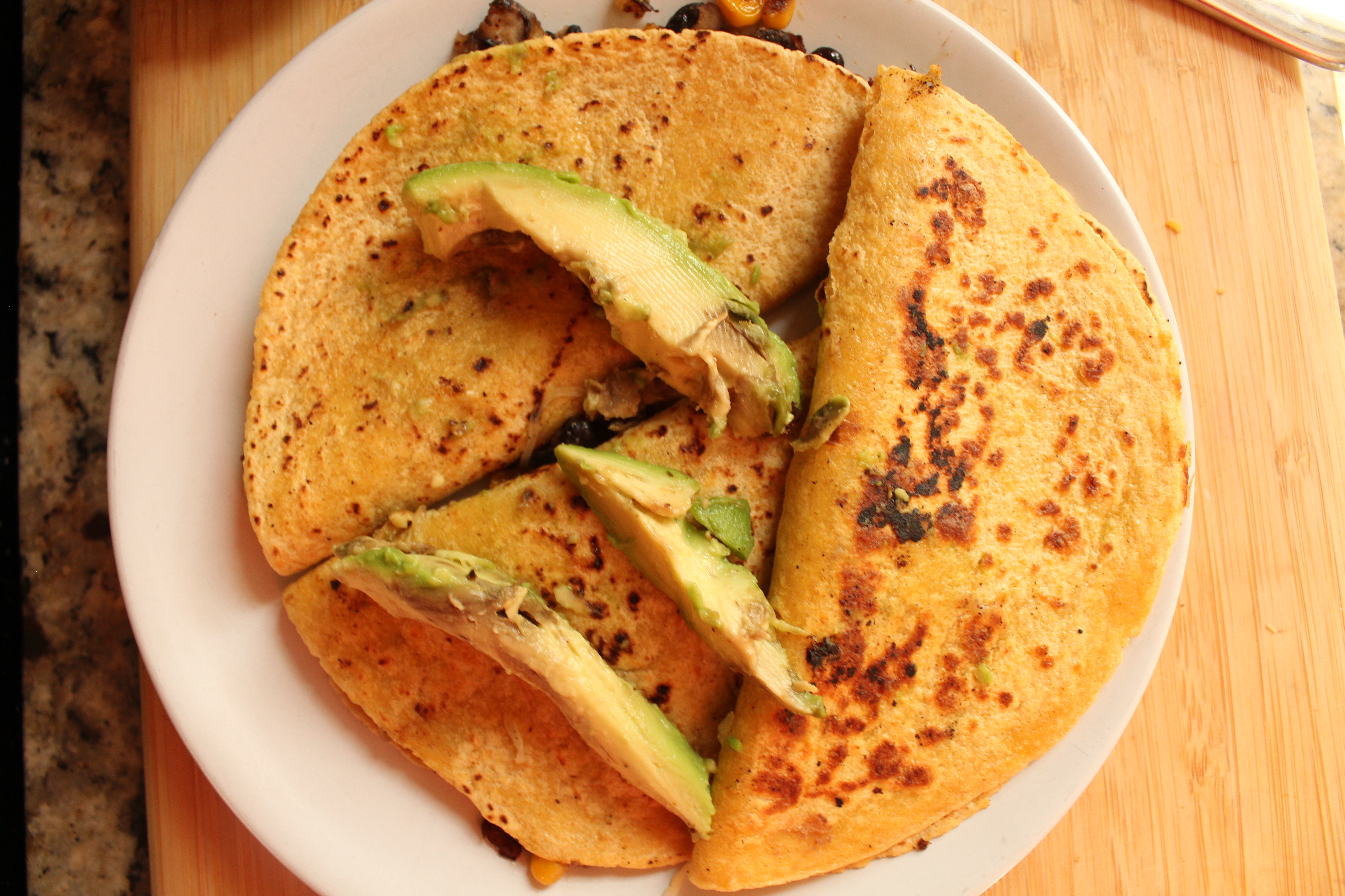 Once the next side is crisped, remove from the skillet. Set on a plate, and let cool for a few minutes to avoid a burn. Cut up an avocado and enjoy!