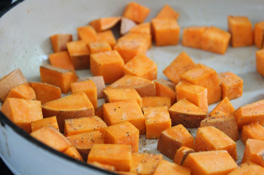 | 1 Sweet Potato | 1/2 Diced into 1/4″ cubes |
