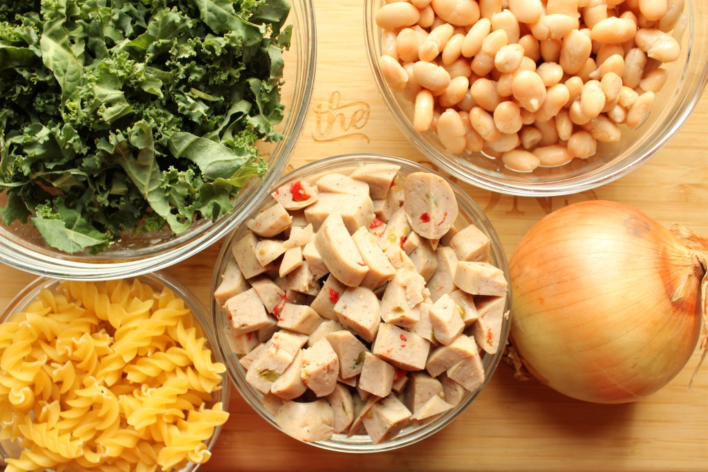 | 1 pack of chicken sausage | 3 sausage links “coined” and diced |